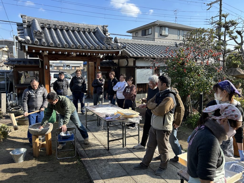 さて、先日12月28日(日)に、西正寺にて町会が主催のお餅つきが行われ、地域のみなさんと一緒にお餅をつきました。